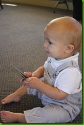 Our next door neighbor, Ms. Nancy, is a retired teacher. On Monday’s she does “Mommy and Me” in our neighborhood meeting house. This year I am working on an alphabet scrapbook for Tucker. Summer has 2 so I thought I would at least get him one going. So you might see more pictures of Tucker at Mommy and Me as I try to work on his ABC album! He really is into this year….dancing, crawling, now walking/running, playing instruments and of course enjoying the snacks.